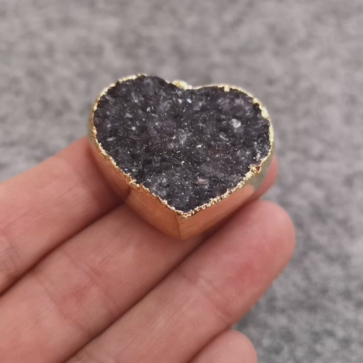 Amethyst natural raw stone crystals druses heart, gold plated, karma pendant, AA healing stone quality, consecrated - love, harmony , dark high-quality amethyst, precious healing stone pendant, sterling silver gold plated electroplated