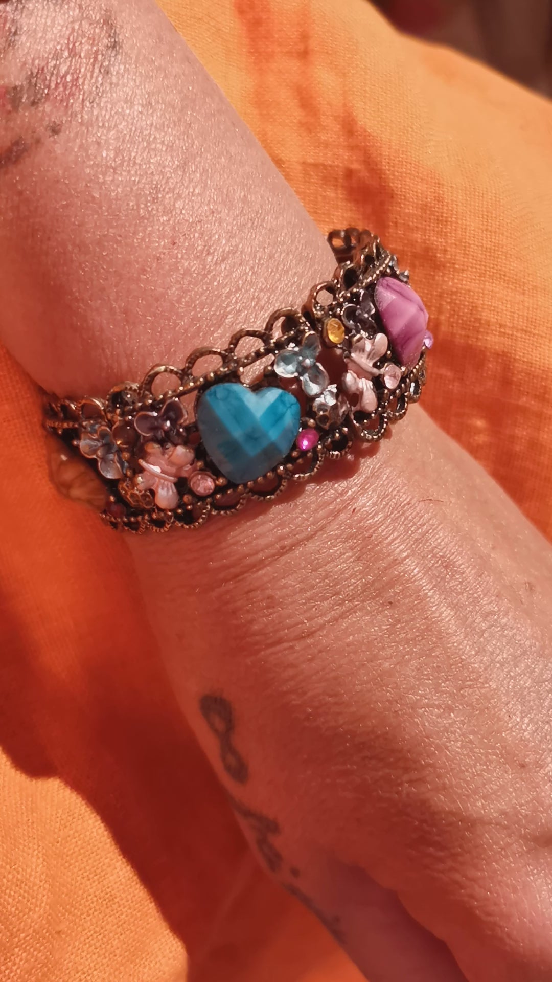 Pulsera brazalete hecha con amor, talla M, colorida, metal, bisutería moda hippie boho, vive amor risa