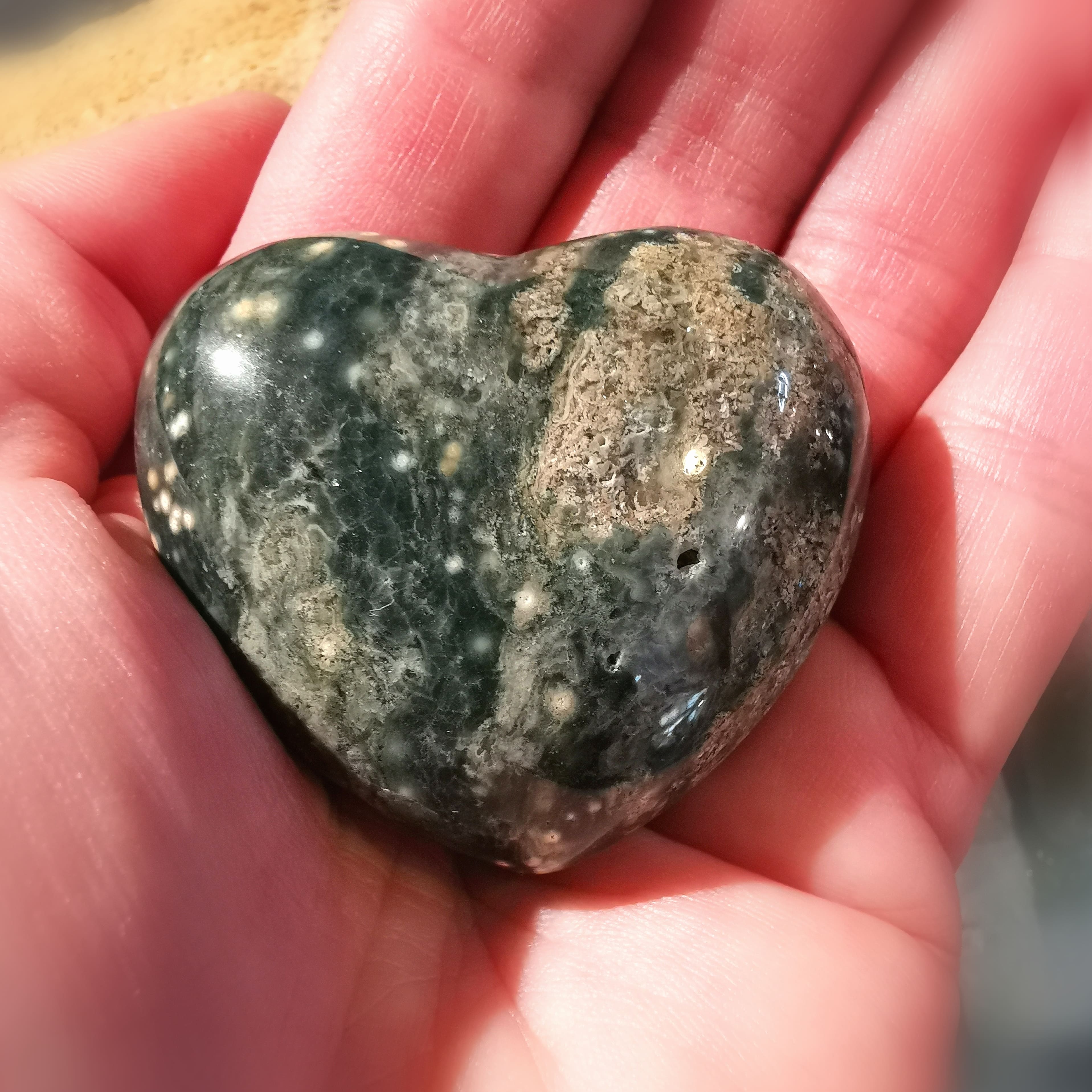 💚 Ozean Jaspis Herz – Handschmeichler für Entspannung & Meditation, geweiht ✨