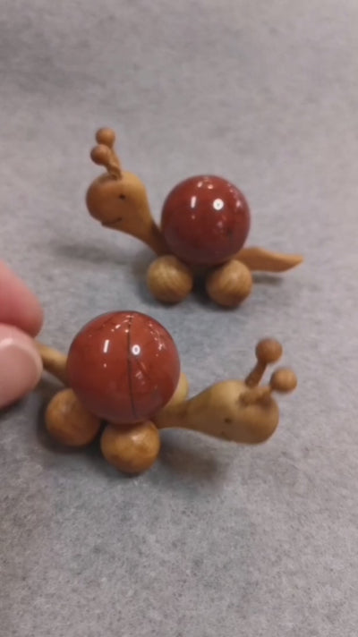 Eine liebevoll handgefertigte, kleine Energieträger-Schnecke aus rotem Jaspis und naturbelassenem Holz.